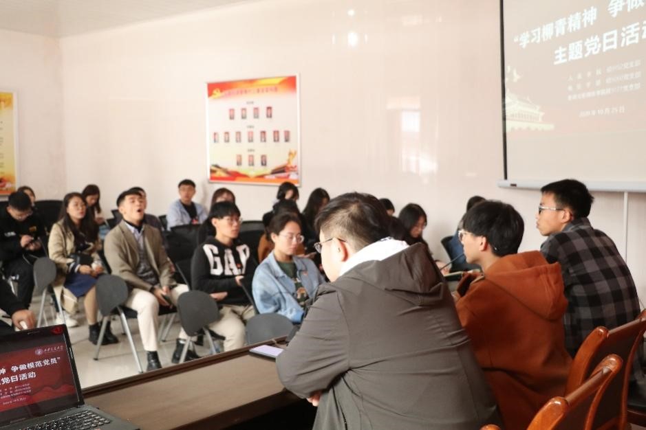 的闫伟超同志回顾了柳青的生平,他提出:“学生党员应发扬西迁精神,心系同学、心系群众,要与同学们保持交流沟通,从群众中来,到群众中去,努力做好自己的工作,真正担负起肩上的使命。”
