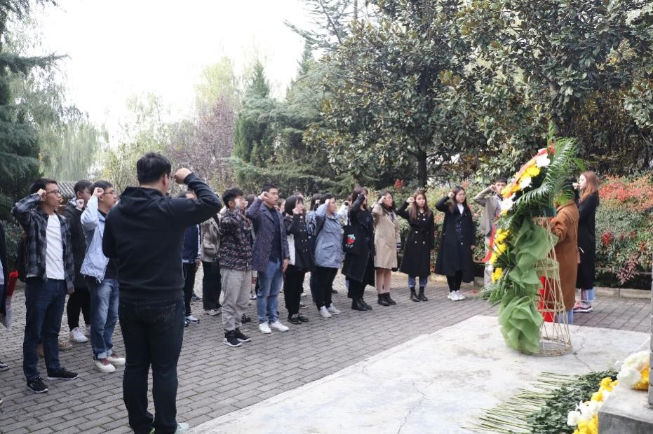 硕9152党支部徐达同志介绍了柳青同志简要事迹,称柳青的一生,是毛主席《在延安文艺座谈会上的讲话》中“有出息”作家的实践者楷模,是习近平总书记《在文艺工作座谈会上的讲话》中“为人民抒怀”作家期盼的楷模。而后,党支部代表在柳青墓前献上花篮,全体党员同志依次献上菊花,黄白相间的花朵有序点缀着整齐的青砖石板,映衬着柳青同志高尚无私的品格。在电信学部硕9060党支部苗鸿易同志带领下,全体党员同志重温入党誓词。