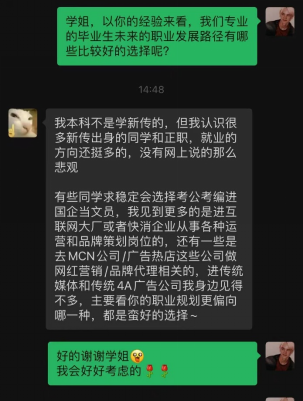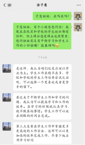 10月8日晚21:05,双方举行“朋辈导师”线上聘任动员会,双方团支部书记分别发言。硕4229团支书张文程表示,非常高兴与新媒体2402团支部举办共建活动,有机会接触到同专业的新鲜血液。希望能发挥硕士生的余热,助力本科生在学业、生活、实习、竞赛等各方面不断进取,创造属于交大新传人的辉煌。