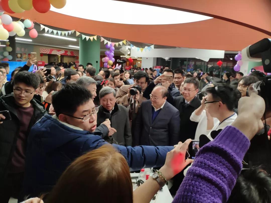 其间,结合当前移动互联时代热点的《Kiki直播间》活动受到同学们的积极参与,Kiki(王刚)及小助理(段永欣)模仿当下的网红风格,在展厅内利用抖音平台直播带货,“推销”口红、眼影、肉夹馍、汉服等各类物品,同时穿插了快闪“抖肩舞”等歌舞内容,引得现场笑声不断,使同学们体验了一把在互联网平台当“网红”直播的乐趣。
