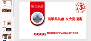邀请到硕0192的郝晨琰同学为全院学生做“携手勇抗疫,交大勇担当”主题宣讲。在主题宣讲中,郝晨琰深入解读了伟大抗疫精神的内核,回顾了交大学子开展的战疫实践。