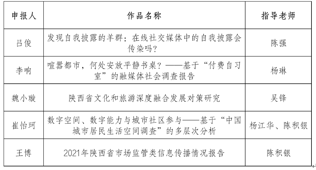 各支参赛队伍经过报名、提交中期考核等环节,最终共有五支队伍完成参赛作品。结合院赛工作组对作品的资格审查情况和我院的实际情况,拟推荐以下五支队伍进入校赛(排名不分先后)。